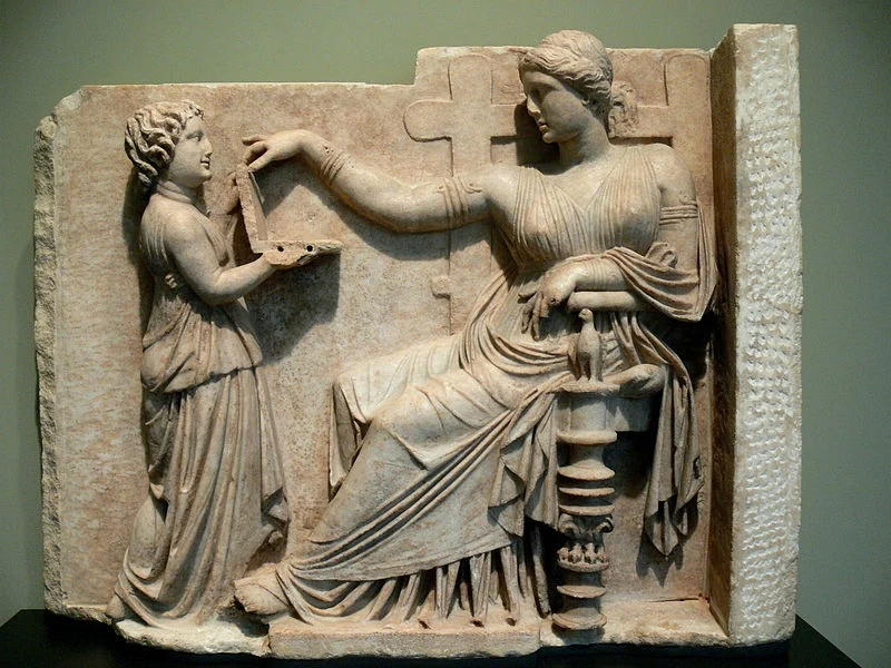 Насправді об’єктом суперечок є звичайна воскова табличка для записів — тогочасний аналог блокнота — або ж тонка скринька для ювелірних прикрас. Такі предмети були поширеними аксесуарами для жінок високого соціального статусу в античні часи, що й відобразив майстер у камені.