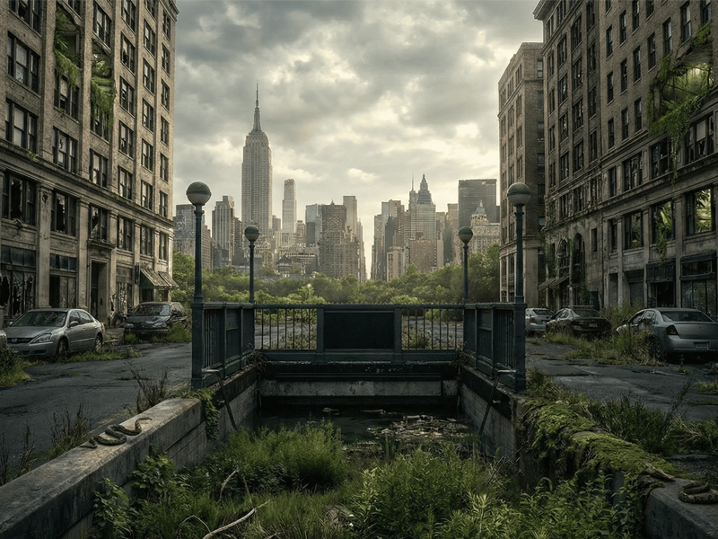 Через 50 років у Нью-Йорку сформується повноцінна дика фауна: у парках оселяться олені та індики, з’являться койоти, рисі й навіть чорні ведмеді, а хижі птахи гніздитимуться у покинутих хмарочосах. Ліани й плющ повністю обплетуть будівлі.